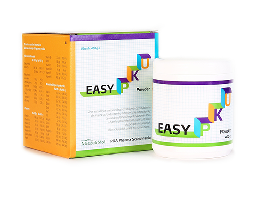 PKU EASY POWDER je směs esenciálních a neesenciálních aminokyselin bez fenylalaninu obsahující sacharidy, vitamíny, minerální látky a stopové prvky. Přípravek je určen k dietnímu režimu při fenylketonurii (PKU) a hyperfenylalaninémii (HPA) u dětí od 10 let věku, dospívajících a dospělých. Přípravek je v prášku a slouží k přípravě nápoje. Přípravek PKU EASY POWDER je určen pro zvláštní výživu.